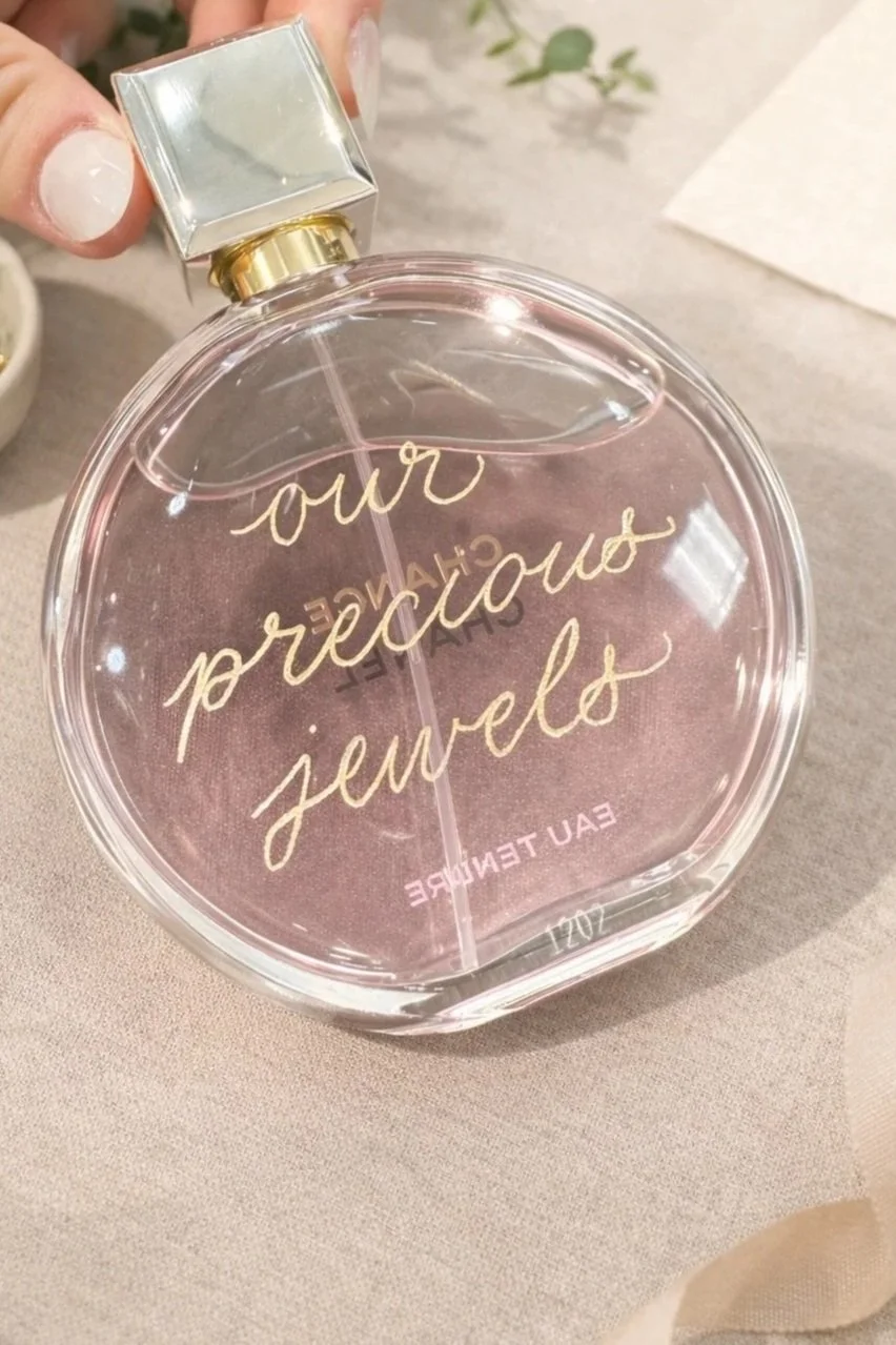 Live events bring an interactive and memorable experience to any setting. From engraved perfume bottles and glassware to beautifully lettered tags and gifts, each piece is created with care, intention, and attention to detail.